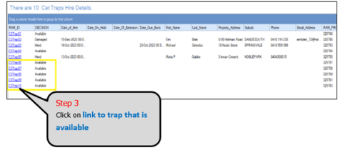 3. The trap may already be on hold for the customer, click on that link if that's the case. If not, then click on trap that is available