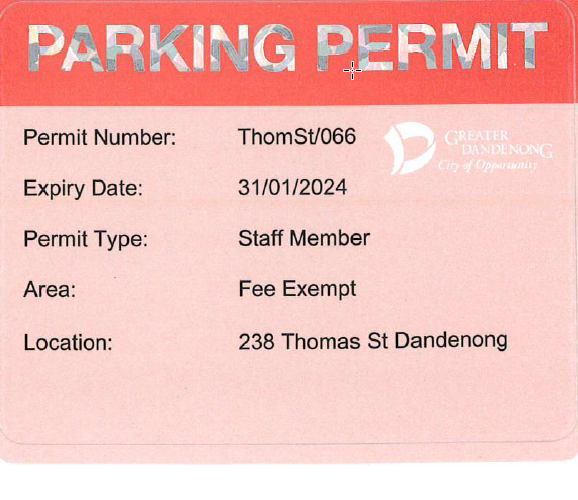 Must pay via payroll deduction to obtain a permit at Thomas Street. Email CSparkingpermits@cgd.vic.gov.au to request a permit.