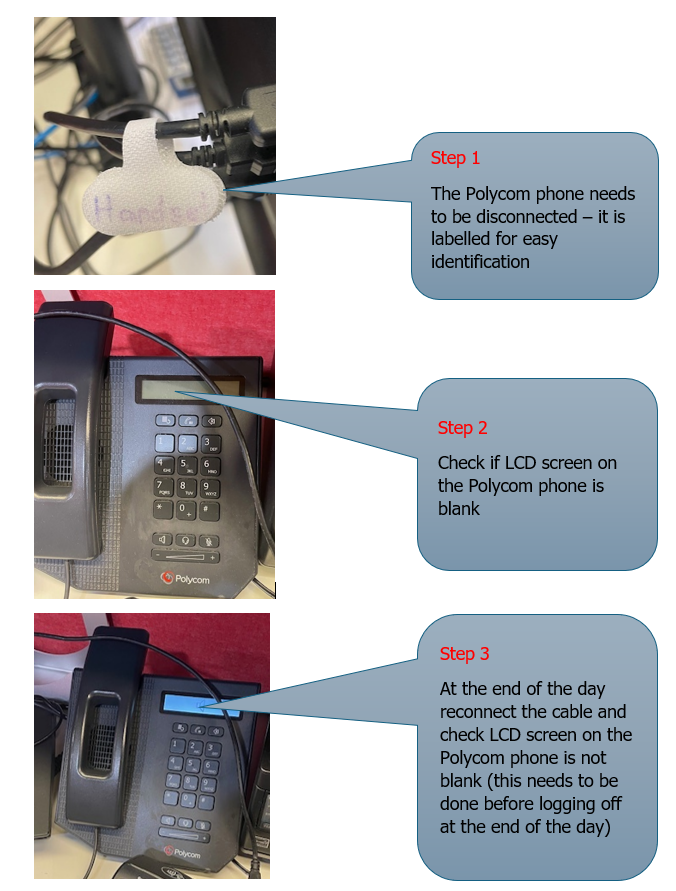 If you can't answer calls on your handset or you are getting the error “Answered at another device” it is because you are at the counter and have two phones connected or you are trying to use a headset and the Polycom handset is still connected.